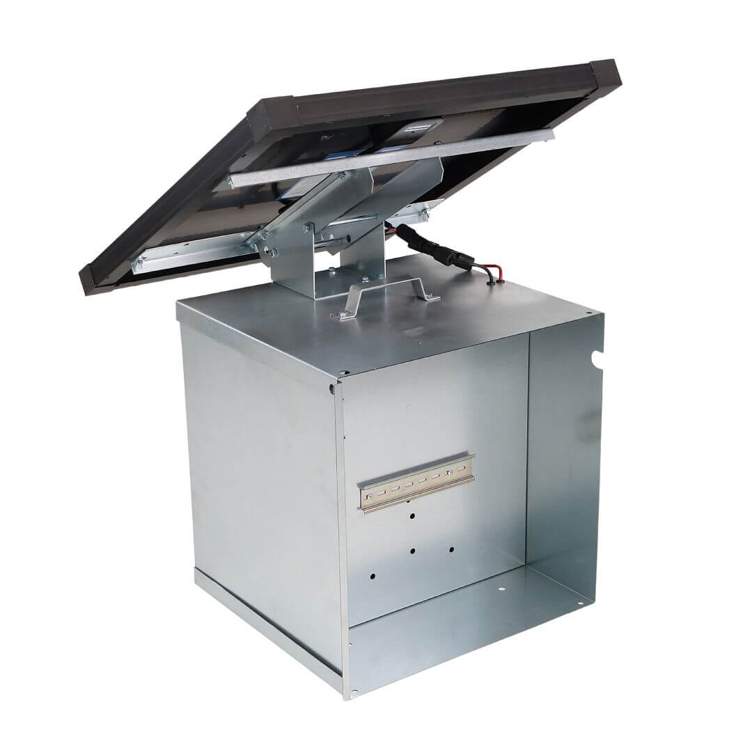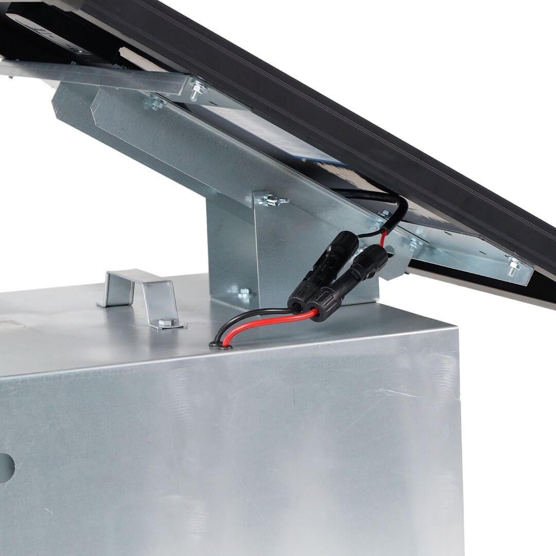 Systém na solárne nabíjanie batérie elektrického ohradníka. Sada neobsahuje zdroj a batériu. Batériu a vhodný zdroj s kombinovaným napájaním je potrebné dokúpiť.