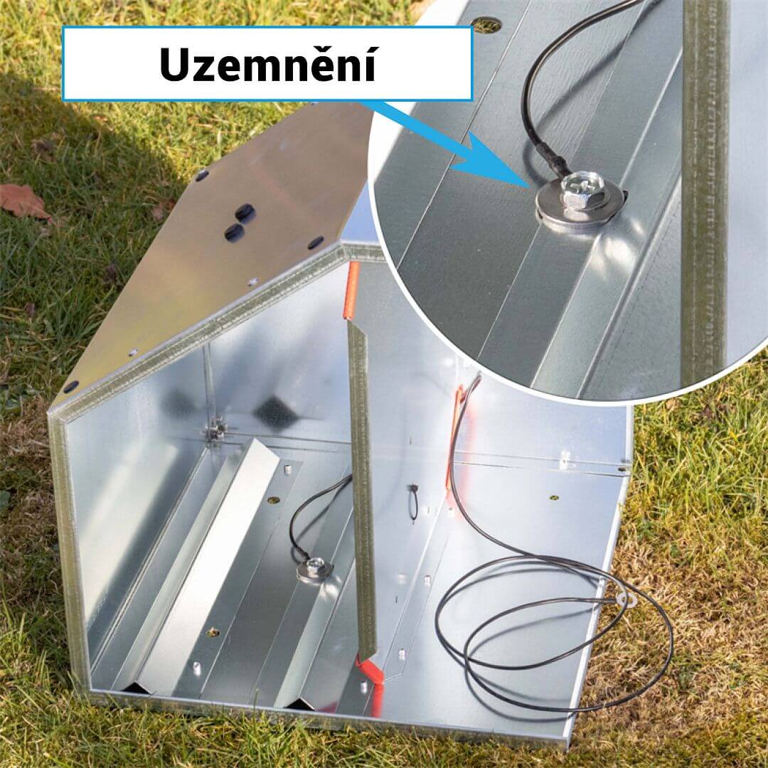 Bezpečnostná a uzemňovacia skrutka proti krádeži prenosnej skrinky na zdroji ohrady.