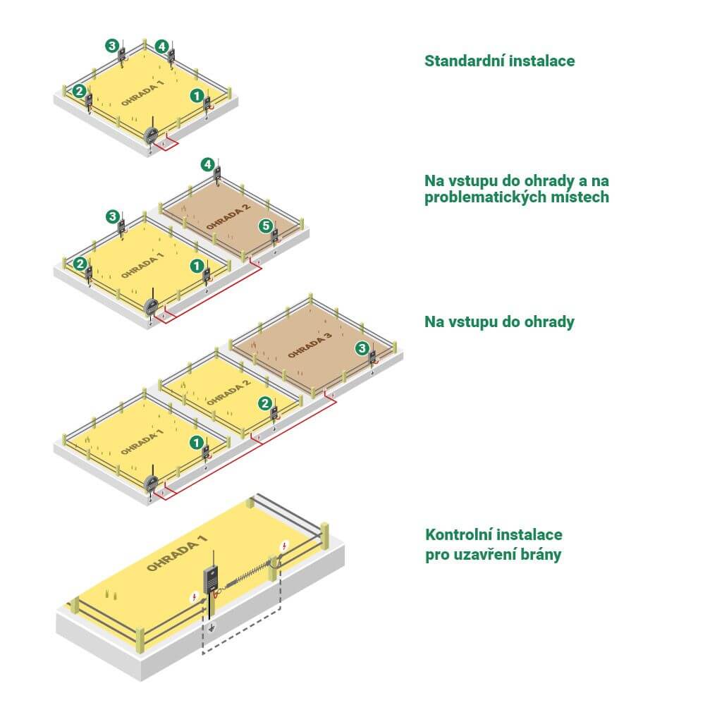 Monitorovacie zariadenie možno použiť na akýkoľvek elektrický ohradník. Možno ho pripojiť k akémukoľvek elektrickému ohrady a funguje so všetkými komerčne dostupnými plotovými zdrojmi. Vhodné pre dlhé trvalé ploty, ako aj mobilné a dočasné elektrické ploty.