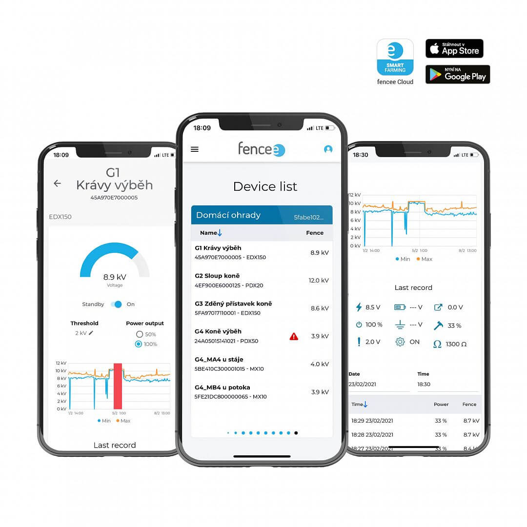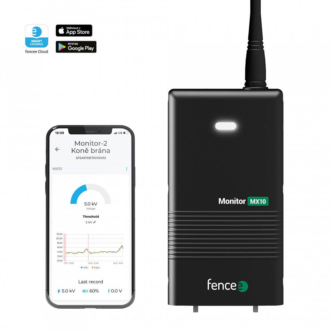 Monitor funguje ako neúnavný strážny pes, ktorý stráži konkrétny sektor ohrady. Monitor MX10 meria hodnotu napätia a zaznamenáva údaje o elektrickej ohrade, ktoré si môžete prezerať v aplikácii fencee Cloud. Pre každú ohradu možno nastaviť ľubovoľnú minimálnu hodnotu napätia (napr. 3000 V). Ak napätie klesne, spustí sa alarm. Neustály prehľad na vašom mobilnom telefóne vám umožňuje predchádzať neštandardným situáciám a prípadom, keď sa môže stratiť alebo zraniť zviera. Funkcie monitora MX10