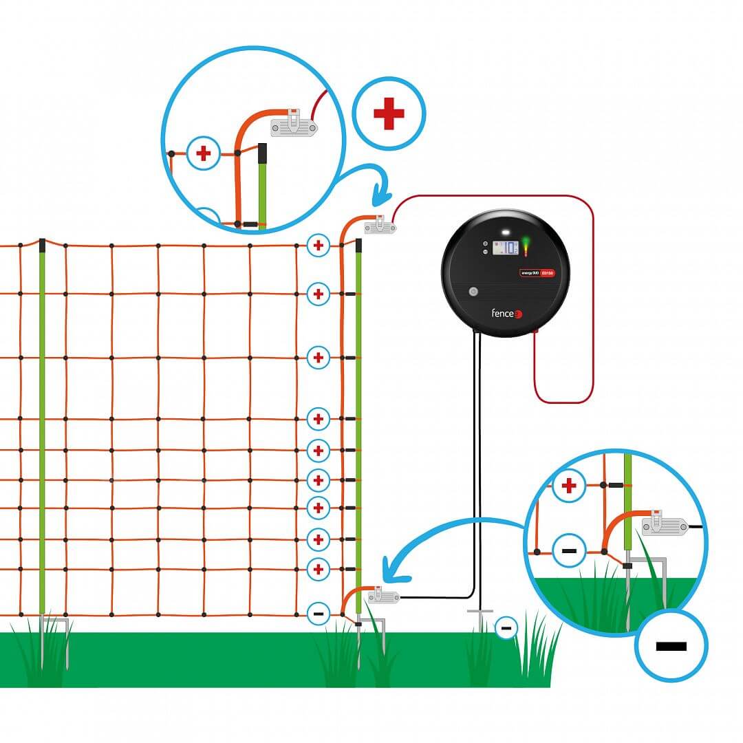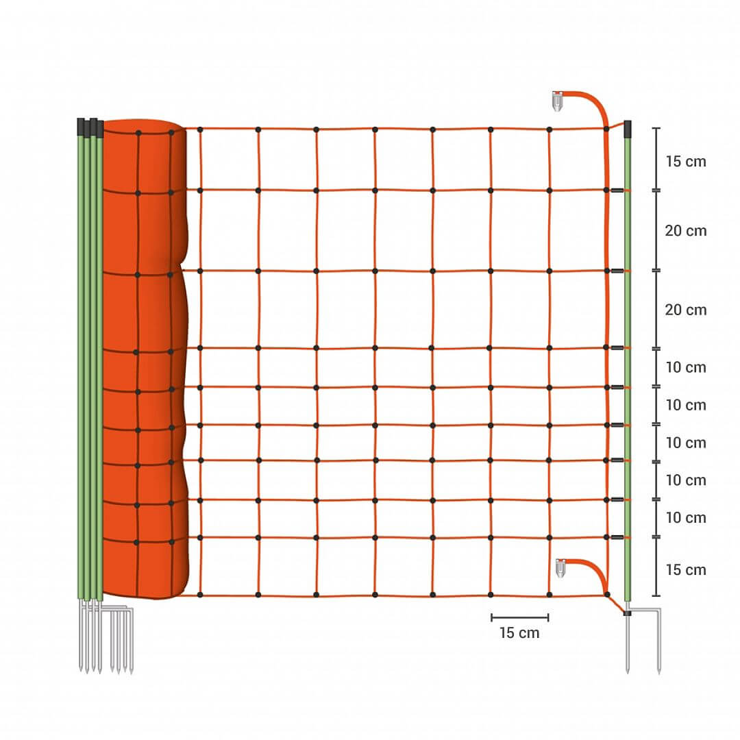 Vodivá elektrická ohradníková sieť vhodná na ochranu stáda pred vlkmi. Ideálna na chov oviec a kôz. Môže sa použiť aj na ochranu mláďat vďaka menším okám v spodnej polovici siete proti vlkom. Sieť je vhodná aj pre iné druhy zvierat, kde je potrebné chrániť stádo pred útokom vlkov. Spodný rad je vodivý, zabraňuje zakopávaniu.