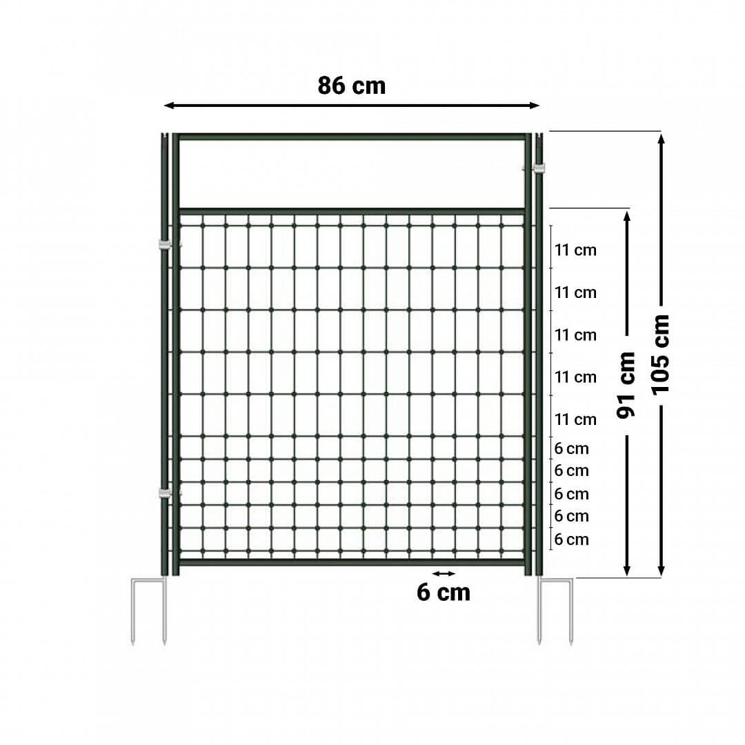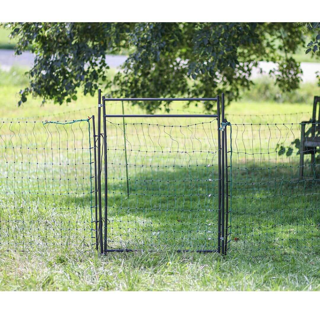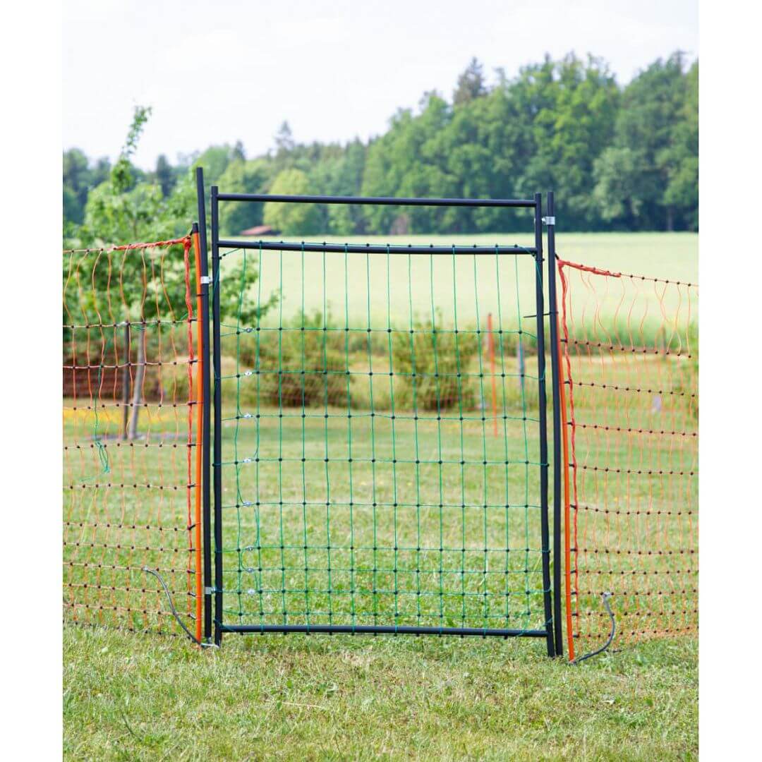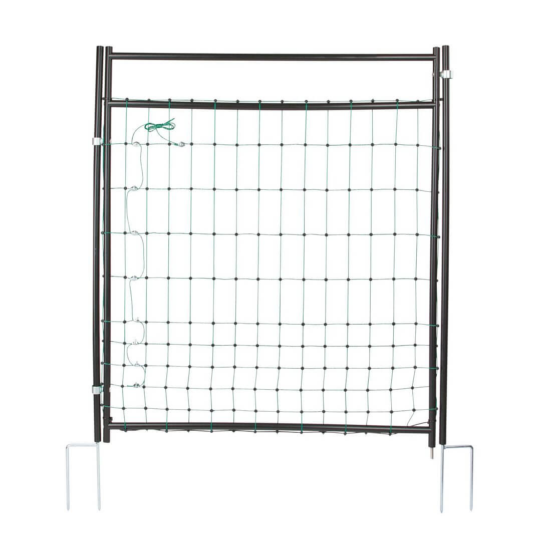 Branka na elektrické siete pre elektrické ohradníky. Slúži na rýchly a jednoduchý prechod k oploteniu. Vďaka odizolovanému rámu nemusíte bránu pri každom otváraní a zatváraní odpojovať od plota. Vhodná pre všetky elektrické siete s výškou 85 – 105 cm.