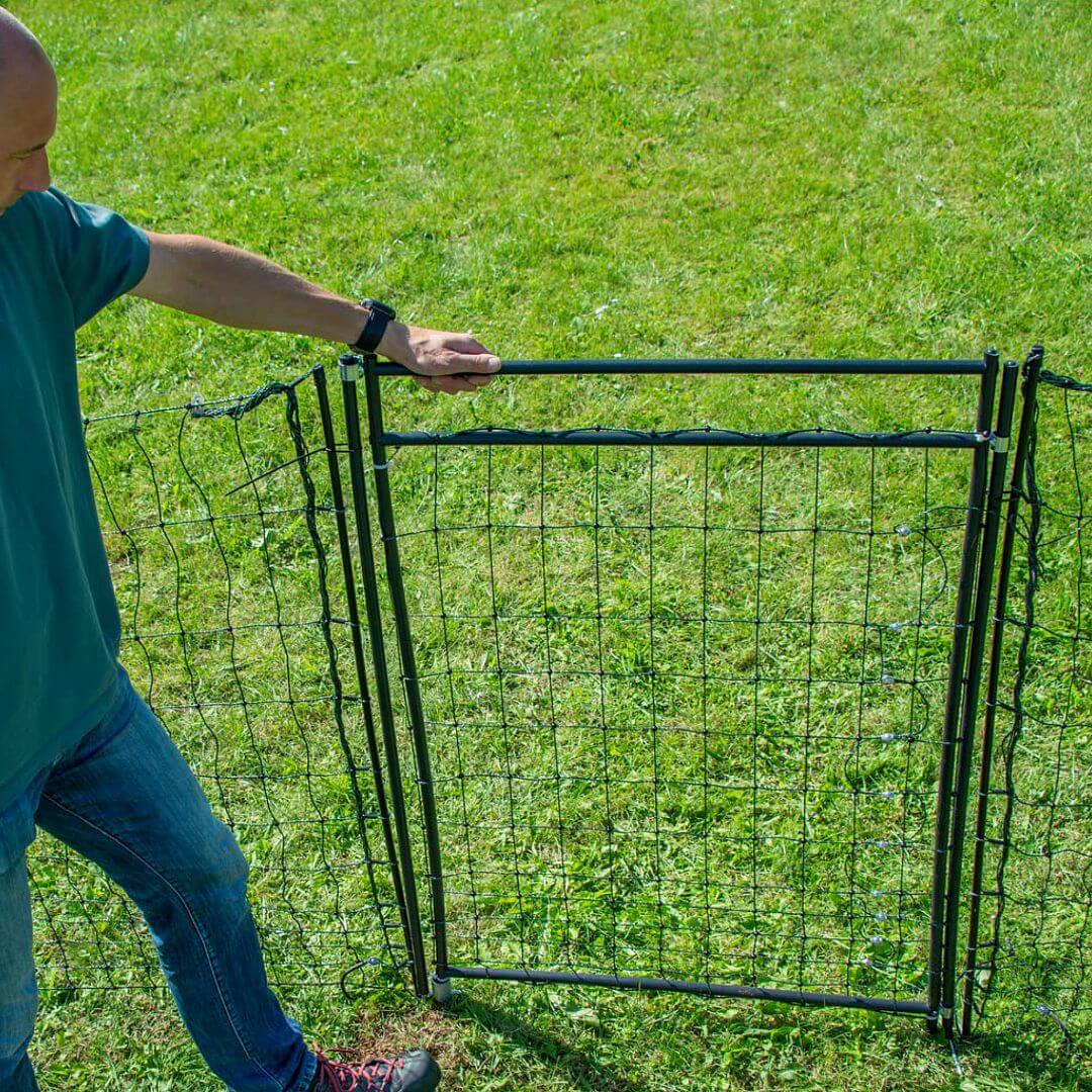 Bránu dostanete ako súpravu vrátane pevných tyčí s dvojitými hrotmi, ako aj spojovacieho príslušenstva.