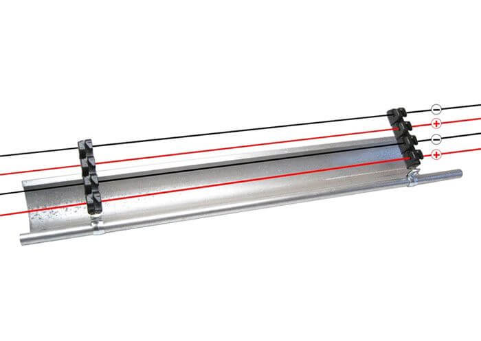 Je špeciálne navrhnutý pre tzv. plus – mínus drôtené vedenia a upevňuje sa priamo na žľab, na 4 drôtené vedenia.