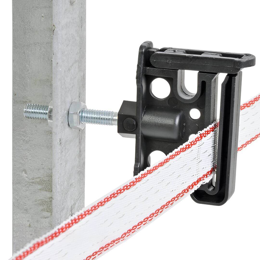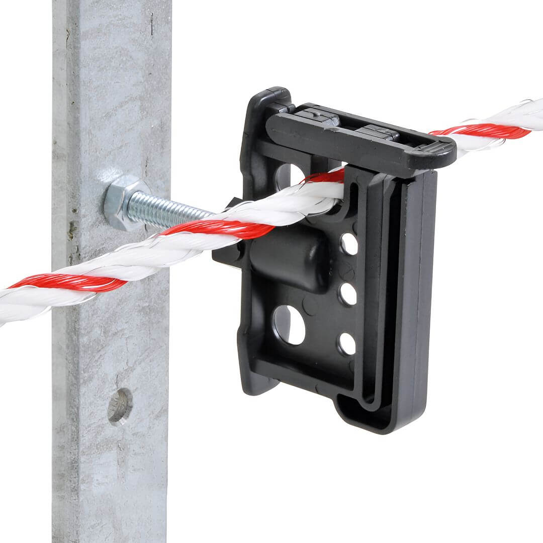 Praktický robustný univerzálny izolátor s metrickým závitom M6. Skvelý na vedenie rôznych typov drôtov elektrického ohradníka.