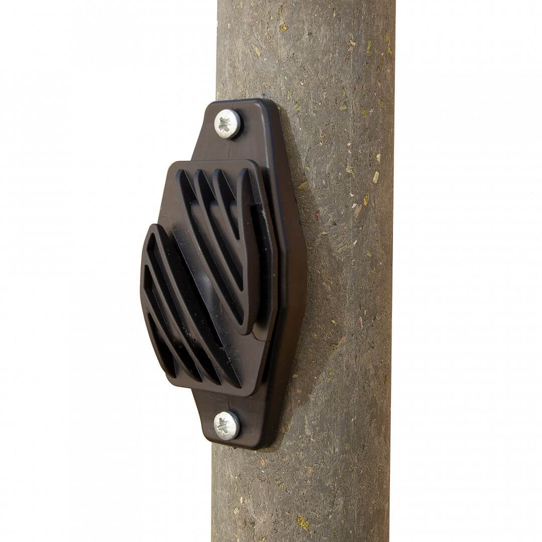 Osvedčený izolátor pre vodivú pásku. Ľahko sa pripevňuje a bezpečne drží pásku na mieste. Upevnenie pomocou klincov alebo vrutov zabraňuje krádeži izolátora.