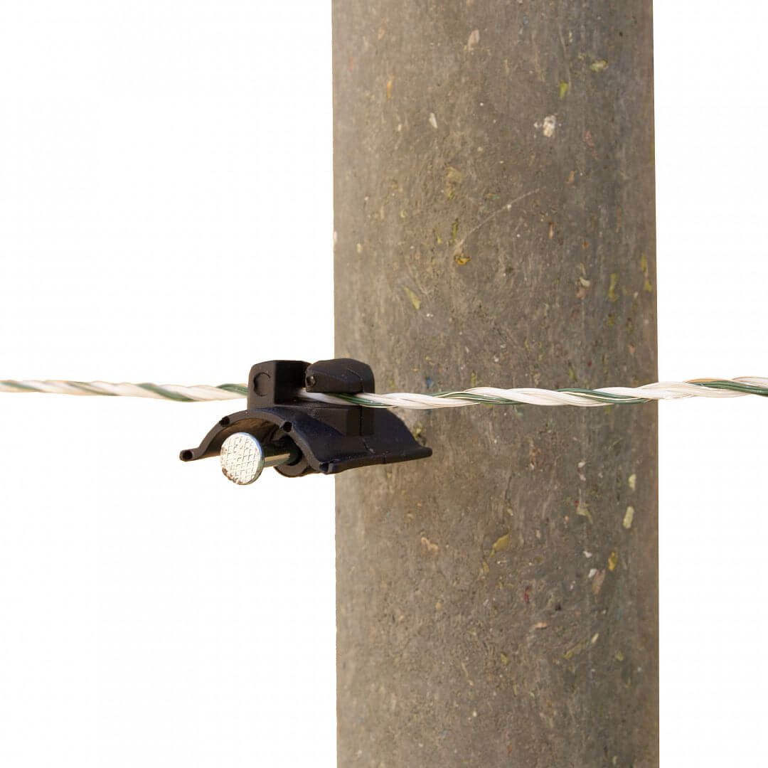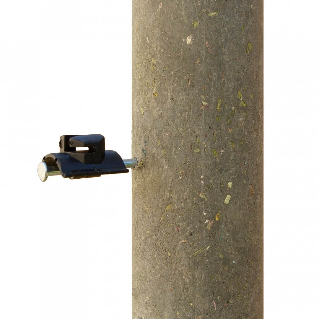 Izolátor na elektrický ohradník s klincom, možno použiť pre oceľové laná a oceľový drôt, drôt do Ø 4 mm.
