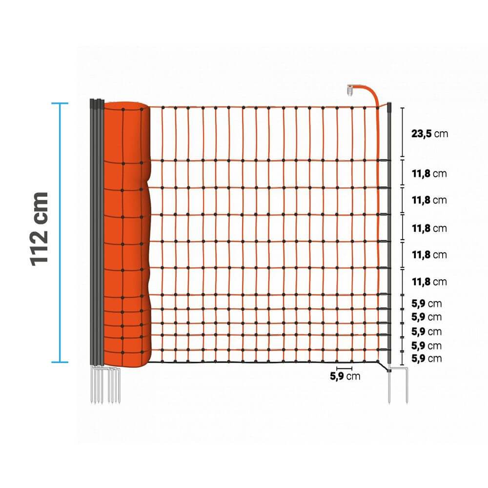 Elektrická sieť pre ohradník pre hydinu spoľahlivo zabraňuje úniku kurčiat a chráni hydinu pred útokom predátorov, ako sú kuny, líšky alebo mačky. Vodivá sieť umožňuje ohradiť perimeter s dĺžkou až 50 m a vďaka výške oplotenia 112 cm je vhodná pre veľké plemená hydiny.