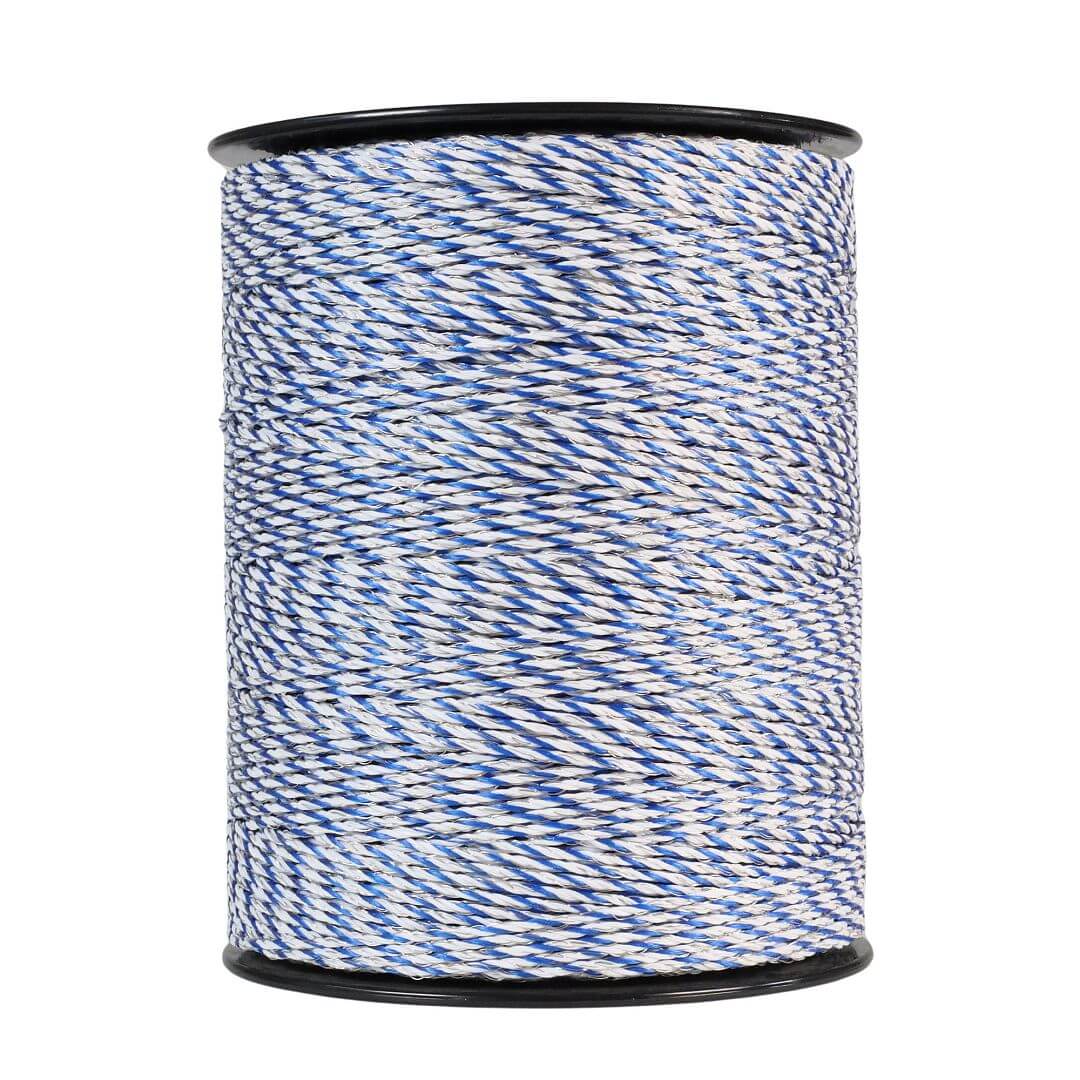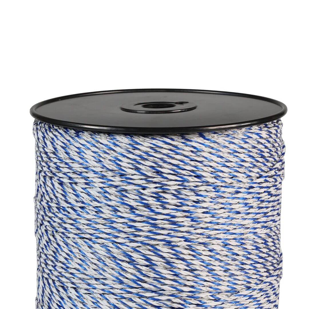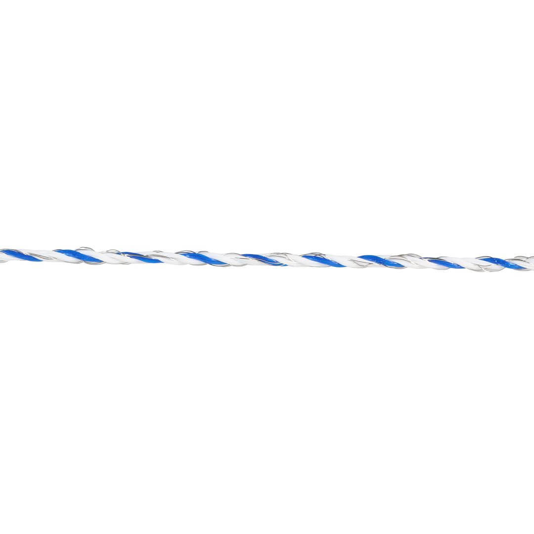 Vysokokvalitné vodivé lanko pre elektrický ohradník. Univerzálne použiteľné. Vyrobené z pevného materiálu odolného proti roztrhnutiu. Odpor iba 0,18 Ω/m. Možno použiť aj na dlhé ploty. Dobre viditeľná modro-biela signálna farba. Štyri nerezové a dva medené drôty vo vnútri pre maximálnu vodivosť. Špičková kvalita. Rolka 800 m.