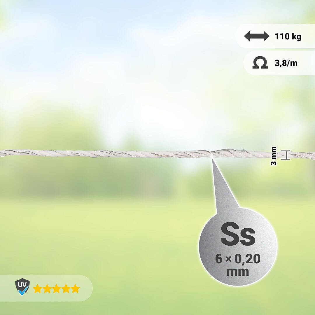 Vysokokvalitné vodivé lanko na univerzálne použitie pre elektrické ohradníky.
