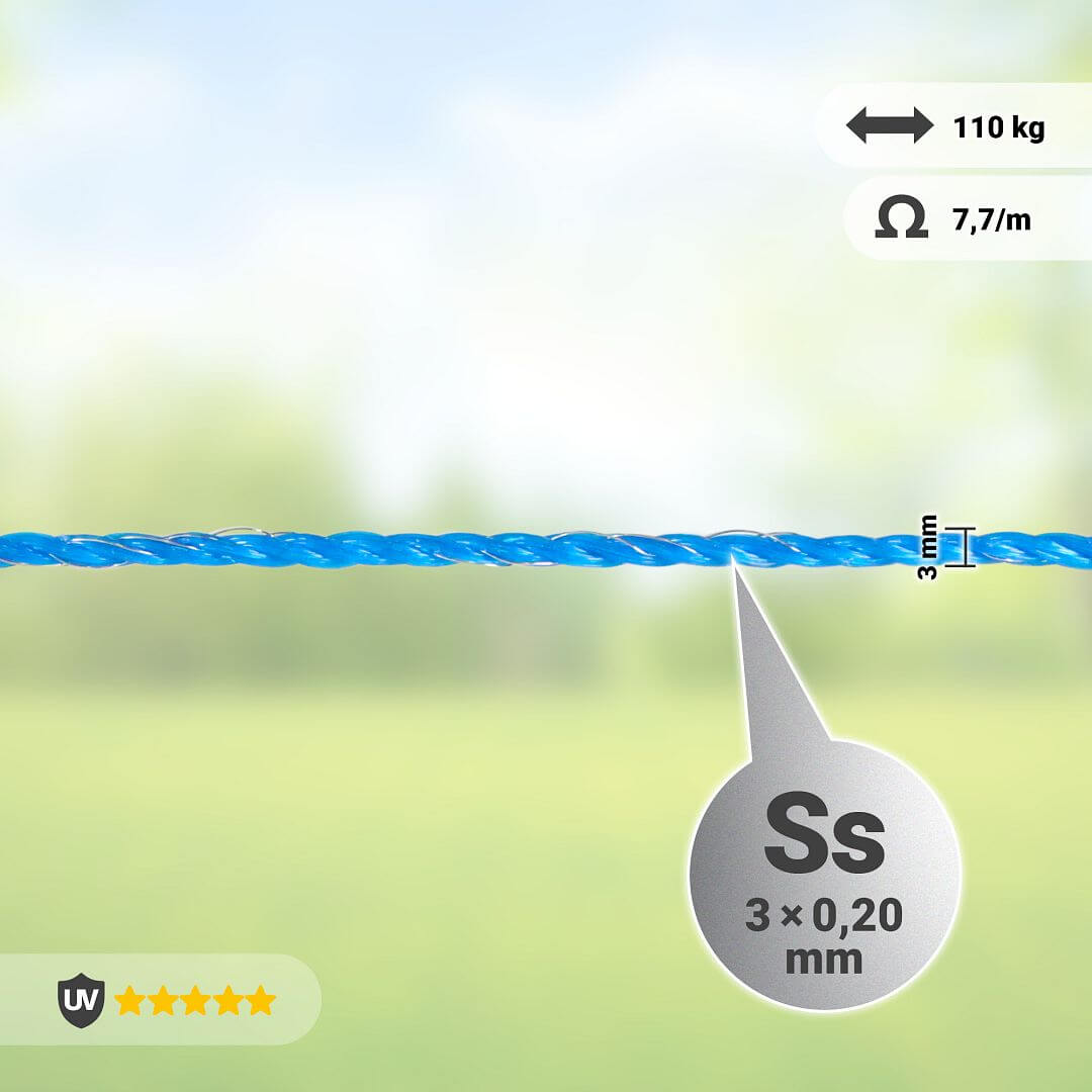 Vlastnosti modrého vodivého lanka 3 mm na elektrický ohradník: