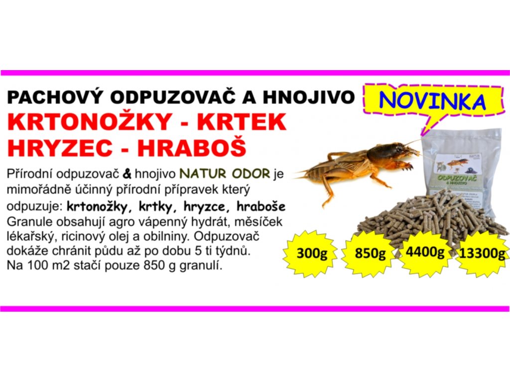 NATUR ODOR Prírodný pachový odpudzovač a zároveň hnojivo na Medvedíkov, krtkov, hryzcov a hrabošov