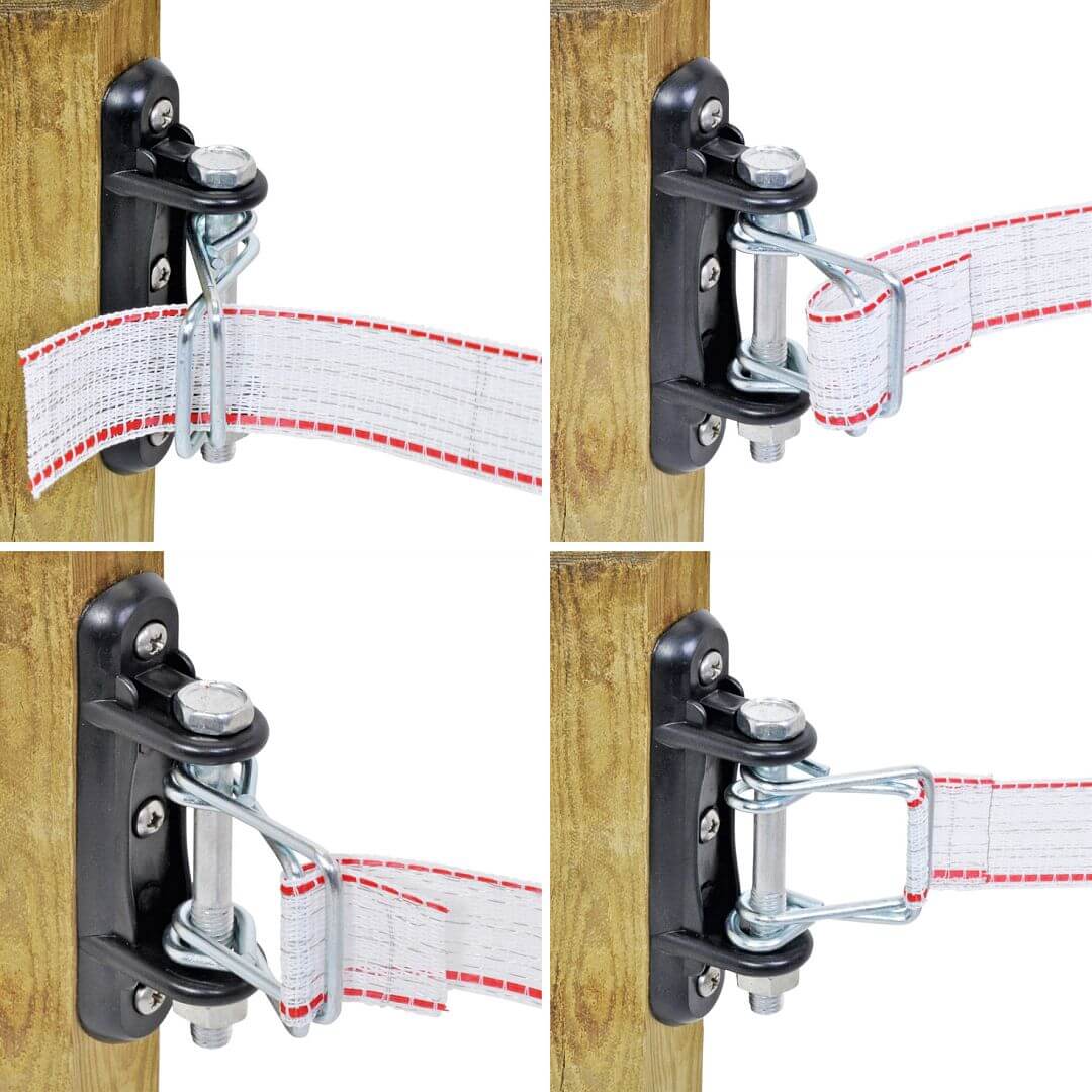 Vhodný pre pásky elektrického ohradníka so šírkou do 40 mm