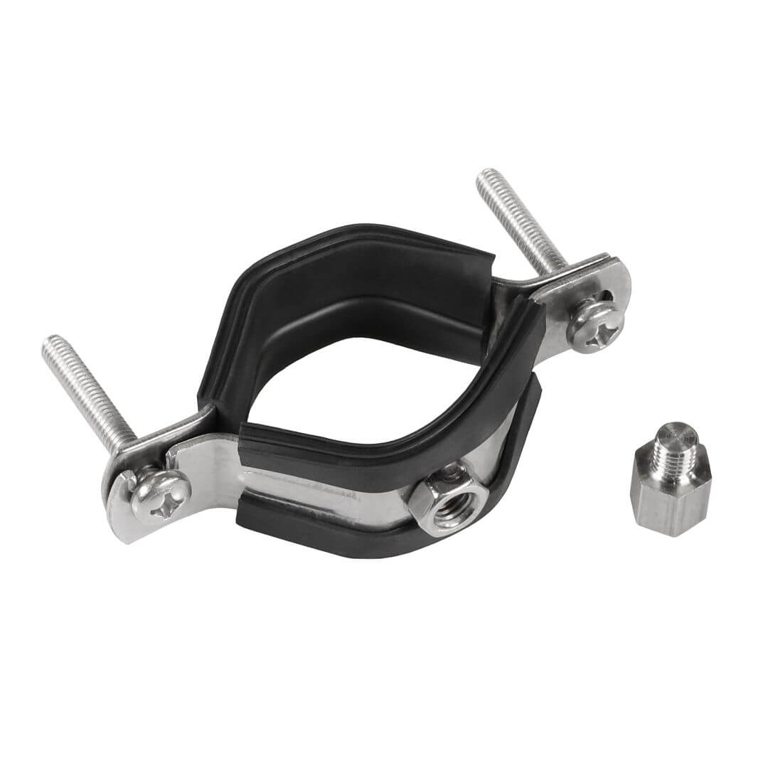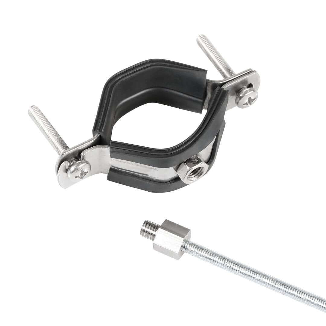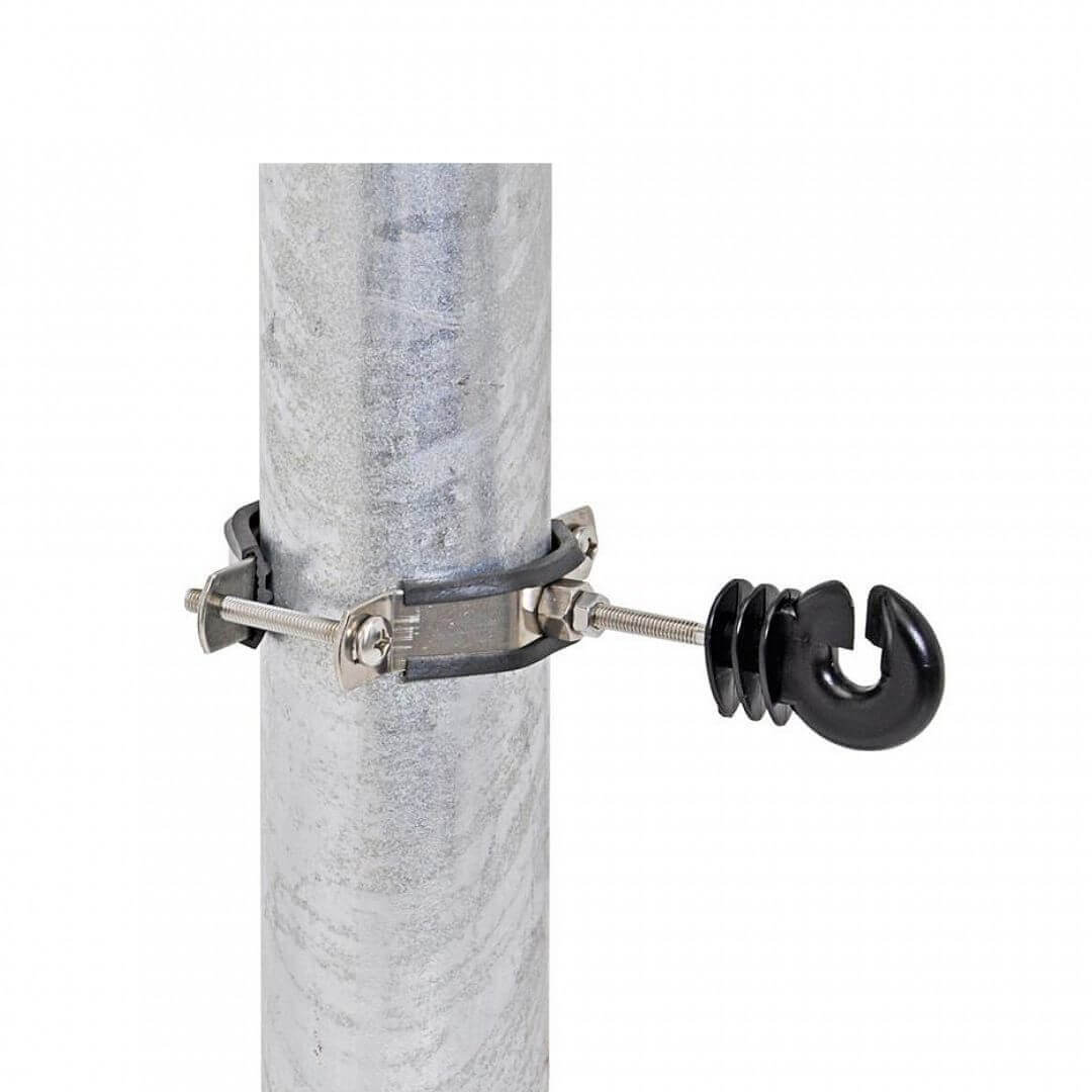 Rúrková objímka s dvoma skrutkami a gumovou vložkou na upevnenie izolátora na stĺpik v akejkoľvek výške.