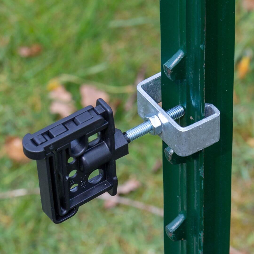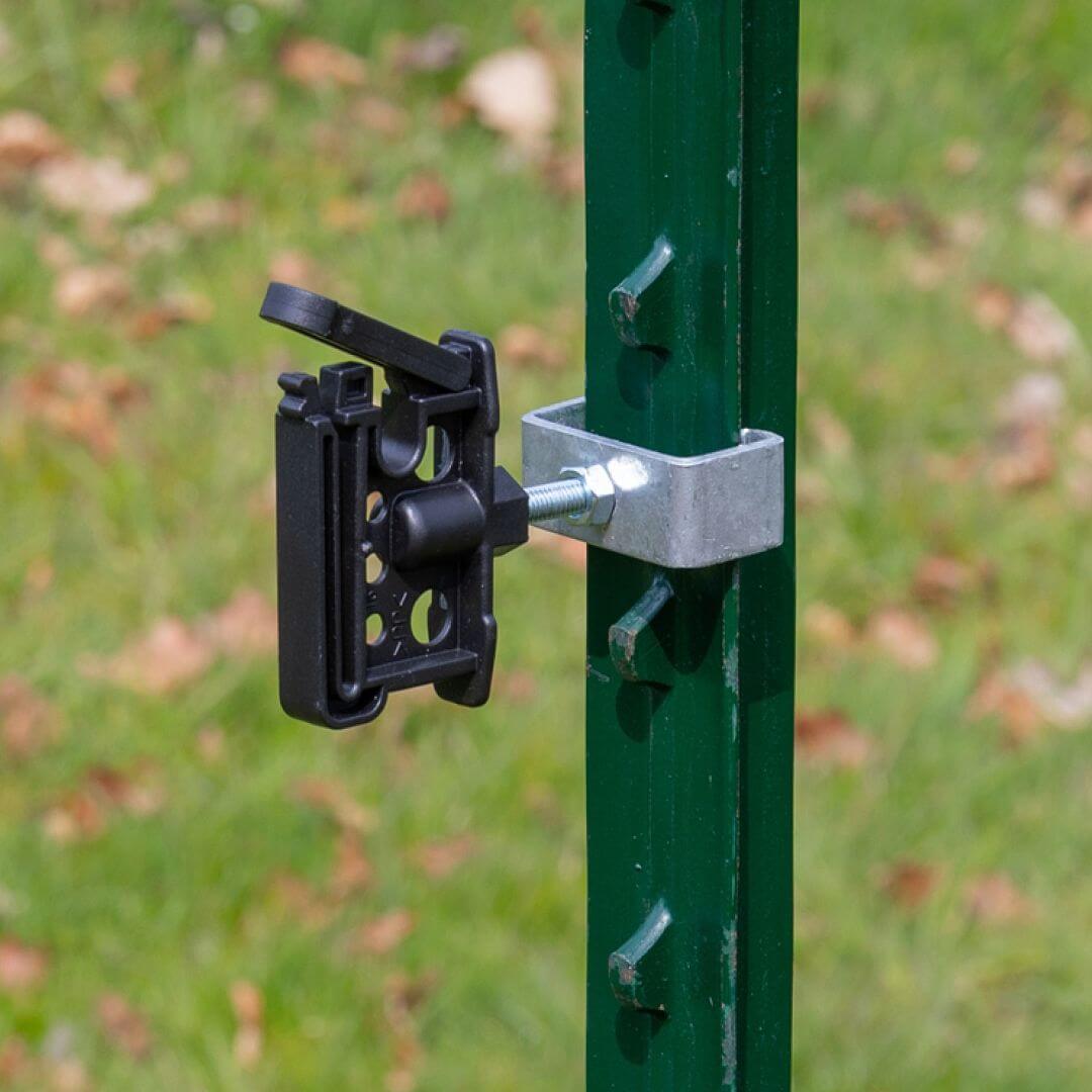 Svorka pre ohradníkové T-stĺpiky na upevnenie izolátorov a príslušenstva s metrickým závitom M6 alebo priemerom otvoru 6 mm.