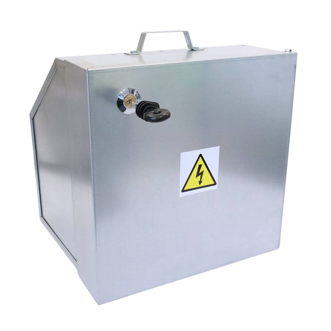 Bezpečnostná skrinka pre zdroj elektrického ohradníka a batérie s ochranou proti poveternostným vplyvom a dostatočnou ochranou proti krádeži. Ak sa skrinky dotkne nepovolaná osoba, dostane nepríjemný elektrický šok. Na jej otvorenie sa používa izolovaný kľúč (2 kusy sú súčasťou dodávky).